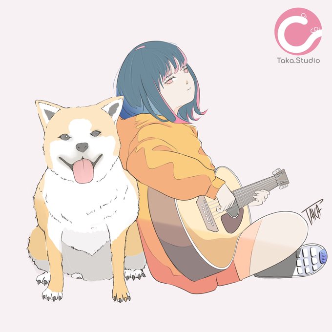 大型犬に寄り添いながら、気ままにギターを鳴らしてみる🎶