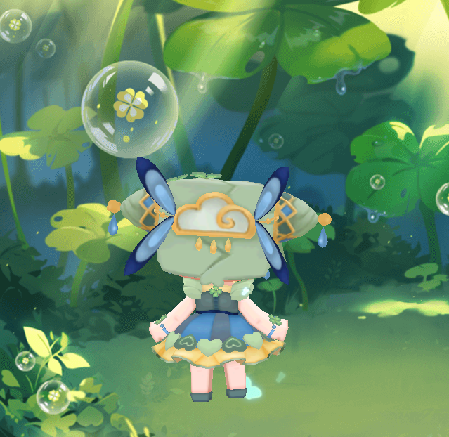 季節の使者の一人である春雨は、巨大な四つ葉のクローバーに乗ったり、雲を操って空から雨を降らせるのが好きです💚