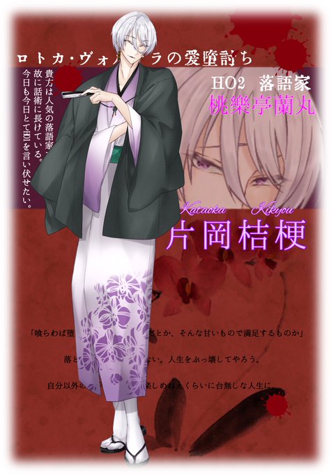 講座名、桃樂亭蘭丸。常時人の良さそうで軽薄な笑みを浮かべている京都人。元、片岡桔平という名の歌舞伎役者でもあった。