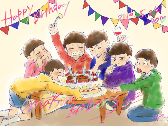 妹のペンタブ借りて初めてちゃんとしたデジ絵描いた!間に合わなかったけど!だいすき! #松野家六つ子生誕祭2016 #5月24日はおそ松さん6つ子の誕生日 #おそ松さん絵描きさんと繋がりたい #おそ松さんクラスタと繋がりたい