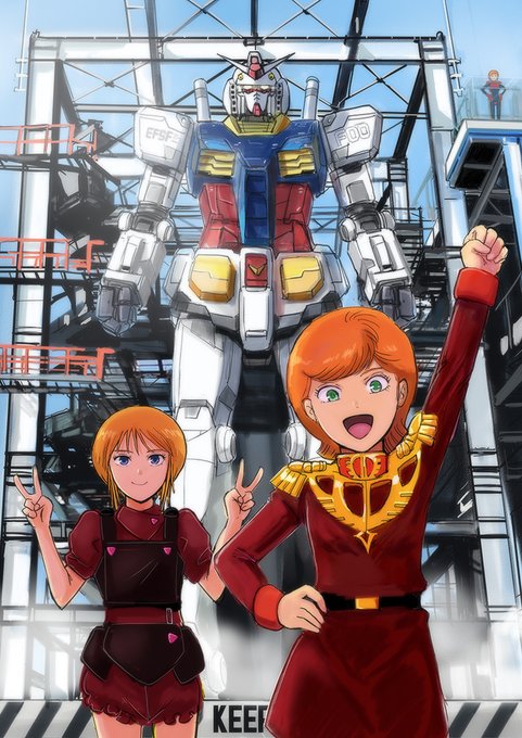 横浜ガンダムをさっそく見学に行った、ミネバ様、プル、プルツーの三人です。