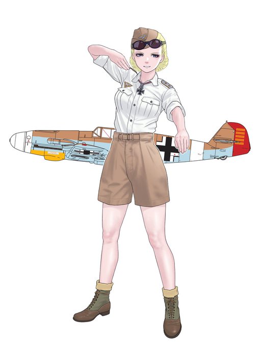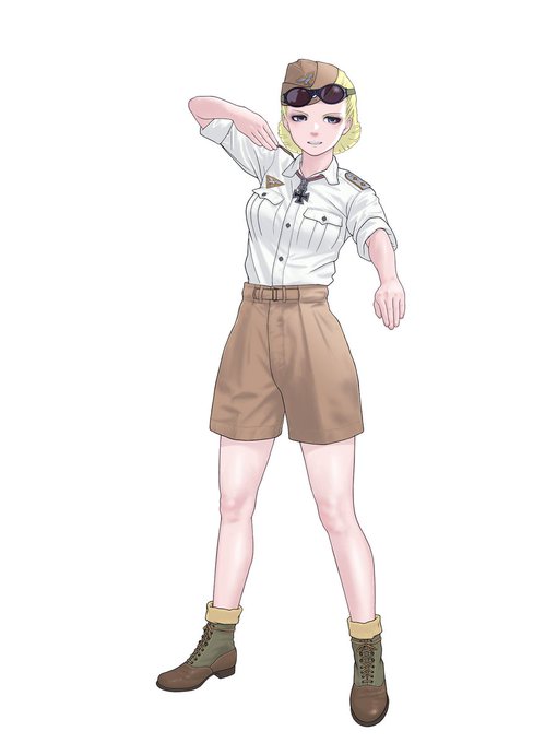 ドイツ空軍のパイロット(アフリカ戦線などに多い半ズボン)姿のローザです