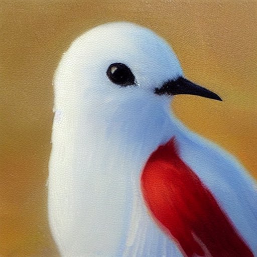 AIのひとに宇宙を飛ぶ白文鳥を描いてもらった1枚目。二枚目は繊細な油絵風で文鳥さんを。