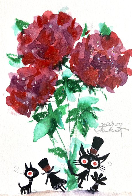 今まで伽羅ちゃんと猫好好絡みクロスオーバーを描いてましたが、まさかここで伽羅ちゃんに憧れる男士と共通点が生まれるとは🤣火車切くんのも猫ですよね?