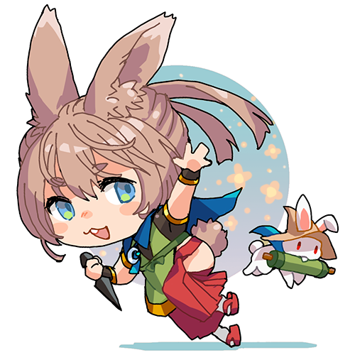 ウサ!ビガミPC、名前は春兎(はると)。花霞流の頭をやっている。異世界トリップするため行方不明になりがちだが、持ち前の実力で現世に帰ってくる。異世界の生物に好かれており、贈物をよく貰う。性格は明るく自信家。自分以外全員カメだと思っている節がある。恩には報いるタイプで情にも厚い。