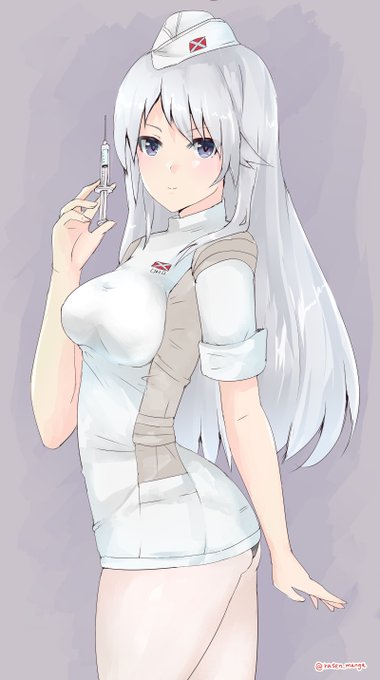 「隊長、注射のお時間です」 「ちえりさん、い、い、痛くしないでね」 #アリスギア #アリスギアお絵かき #紺堂地衛理生誕祭