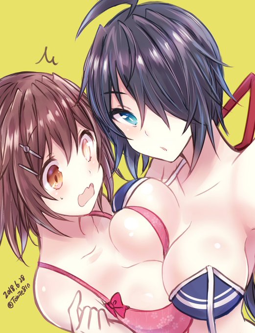古鷹と一緒に水着姿を自撮りしたくてカメラを上げたら水着のひもが外れていることに気付かず2秒後ポロリ写真を自ら撮ってしまう加古