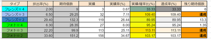 ☆4フレンズの実積率33%…😵今回のツキの無さを見える化しただけになってしまったな