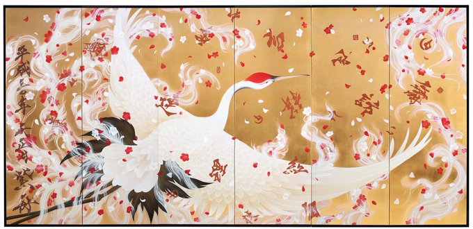 〈スタッフ福より〉紫舟作品 7mの鶴屏風展示!