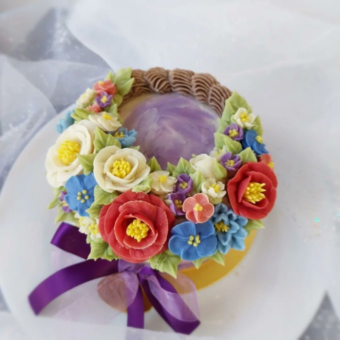 押しキャラのお誕生日のオーダをいただきました。画像のリースをケーキにしてみました😊とてもお喜びいただきました。。良かった✨