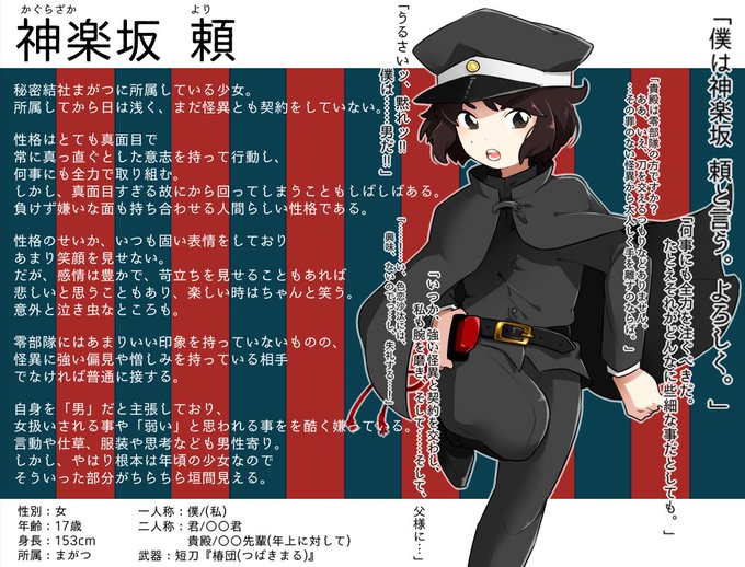 こちら【@zerotukitan 】の企画に二人目失礼します!まがつ女子です😌詳細また付け加えますがまがつで活動する際は男物の学生服を着用します。友人恋人契約復讐相手等色んな関係組めたらと思ってます!🙌#零月譚CS #零月譚_まがつ