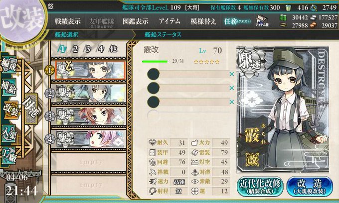 青葉通信!~艦隊これくしょんまとめ~ : 【艦これ】4/6(金) 「霰改二」が実装!改装設計図は必要だけど要求レベルは低め。改装レベルやフル改修ステータスなど https://t.co/HClVJKLrlk #艦これ #青葉通信