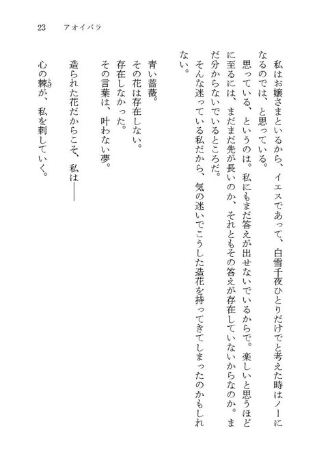 新刊は白雪千夜・ちと千夜小説本「アオイバラ」