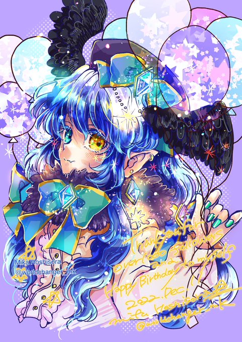 頭に双翼のカラスの羽が生えたおとこのこです。おとこのこです。オッドアイと夜色のふわふわの髪をもっています。空を飛びたい夢があります。(飛べない)