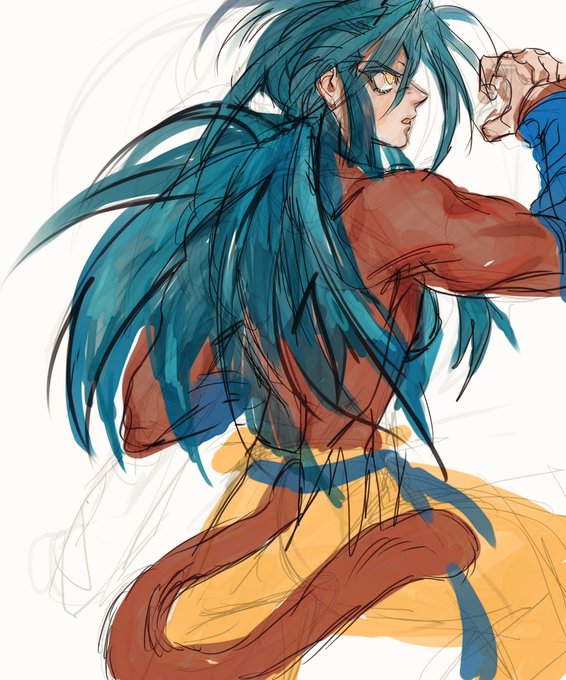 タグを借りて,原作の場面を自分の絵で描きたくて最初の超サイヤ人の名場面へ。
