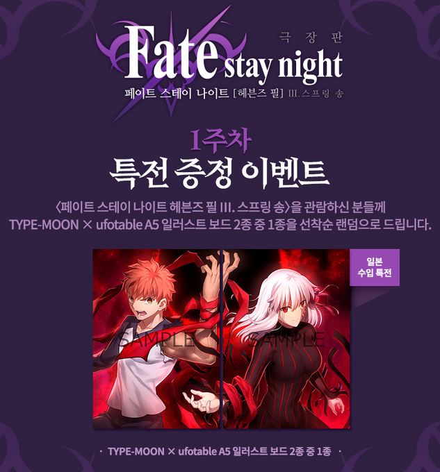 ❗️ 1주차 특전 : TYPE-MOON × ufotable 일러스트 보드 2종 중 1종 선착순 랜덤 증정!
