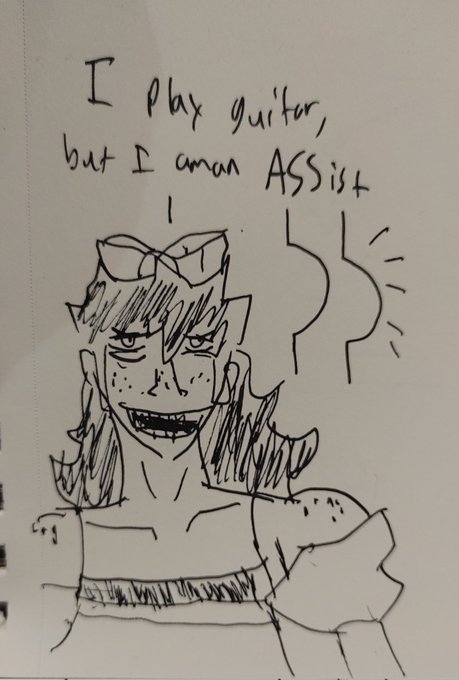 New OC, Ozzy! She's a tall greasy woman who plays guitar. Her blood is 30% broth from instant ramen.