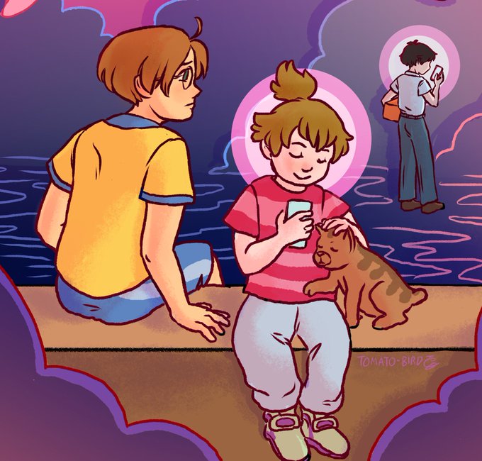 #sarazanmai illustration inspired by episodes 2-3, thinking about Sara Azuma and how she serves both to connect and divide the relationships between Kazuki, Enta, and Haruka...& also her overarching presence in the story is both charming and mysterious