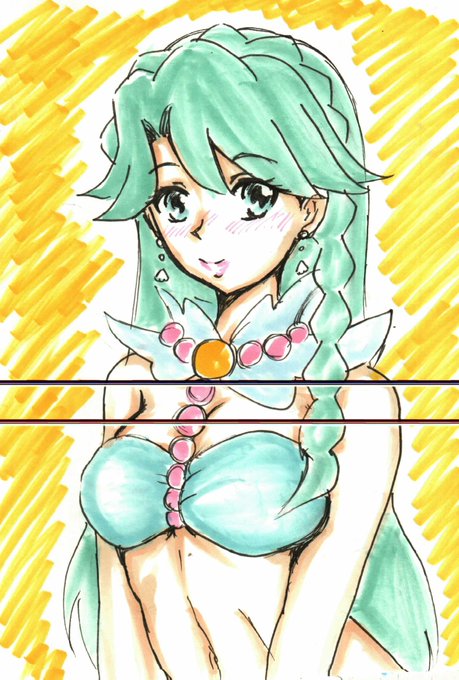 #373ん(262/373) 「キュアぱずサービ終了2周年 」って事で、好きな推しの衣装らくがき。 実際は、ゆりさんのカードの背景だけど、スプリンターみなみさん。 それにしても走りにくそうな髪の毛・・・