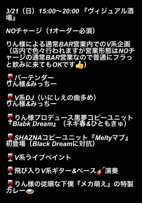 りん様による通常BAR営業内でのV系企画(店内で色々行われますが通常BAR営業なので普通にフラっと飲みに来てもOKです👍)