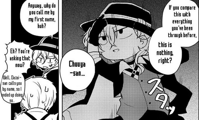A detail that could lead to the theory of Chuuya being used by his father for the Arahabaki's experiment,everyone calls him by his first name "Chuuya" and not his family name "Nakahara",because the real poet RESENTED his father,and didn't want to be called the same name!
