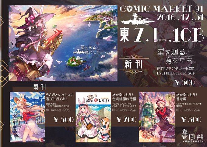 【C91告知】冬コミ新刊「空中配達魔女」をテーマにイラストと文章で楽しむ創作ファンタジー絵本です。予定はA4ポスターもおまけ付きです。既刊旅行本も用意しました。