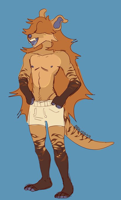 So here is Dingus? (idk about name yet) he is Dingo + Thylacine mix, lives in a camper van in a desert and is a dumbo