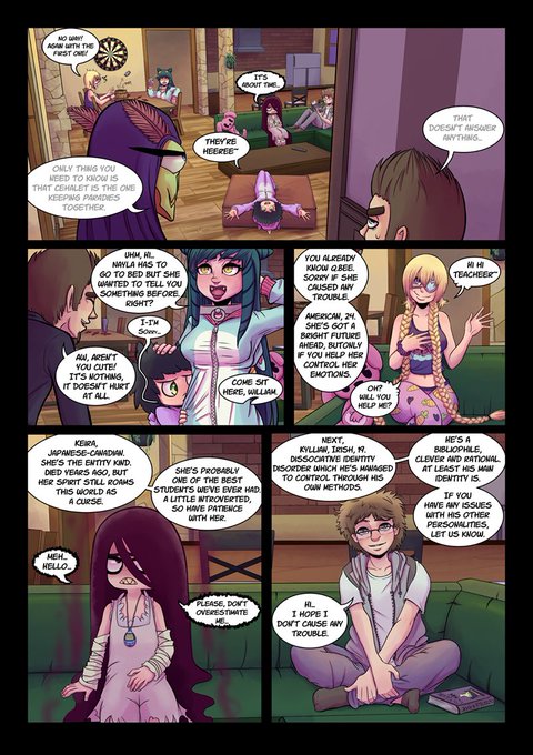 Hi #ComicBookHour! I make https://t.co/V7q1x0b7aj About a school for killer villains! Dark humor, mystery, twists, romance(lgtb), death!