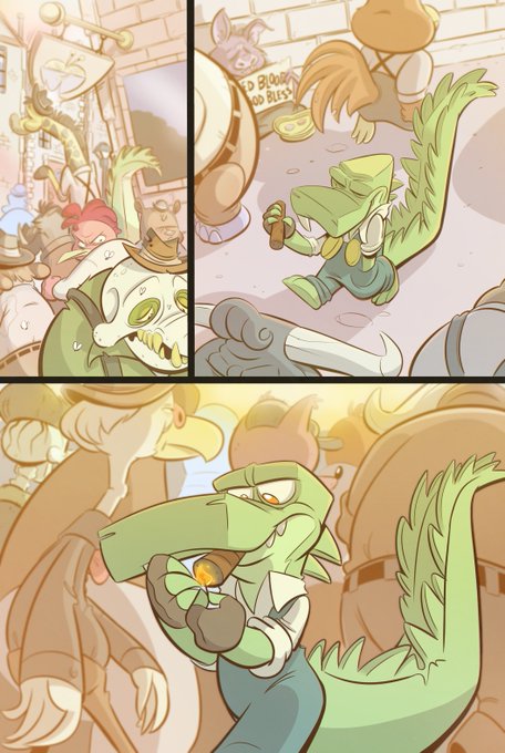 Good morning #ComicBookHour! Here's a panel preview of a new page going up tomorrow with a couple previous pages. :3
