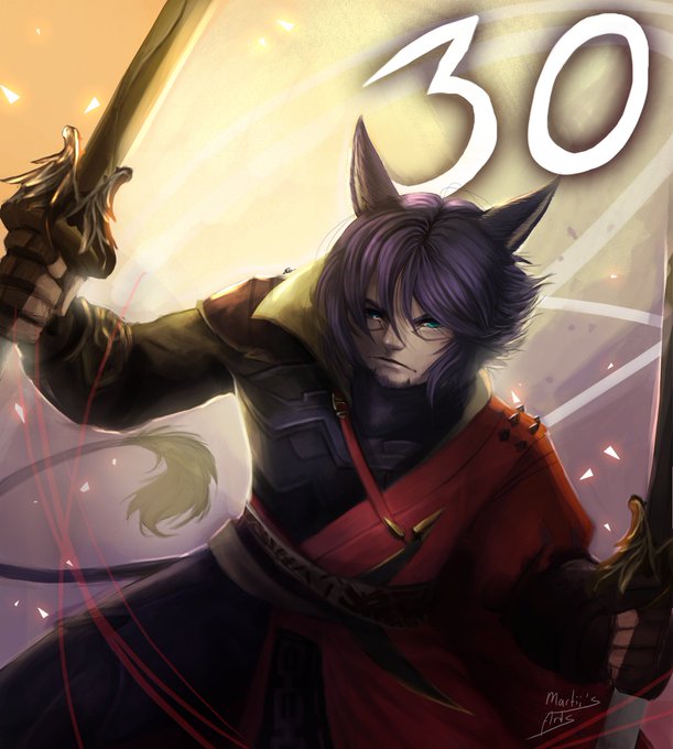 Join in with us with an art countdown hosted by @raehira_FFXIV and see amazing arts every day till the release of Shadowbringers!! I drew my main miqo, Chevell, as Samurai with the new outfit!!