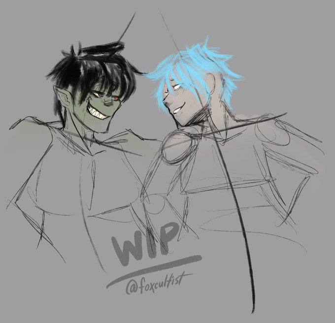 (Credit to @cainosis for the pose reference in the first image) #gorillaz #gorillazfanart #murdocniccals
