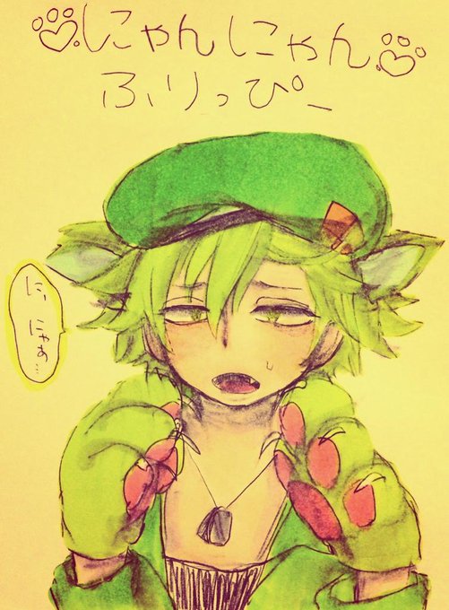 #R15HTF版深夜の真剣お絵描き60分一本勝負 フリッピー擬人化。 猫耳、お手手(肉球)注意。 にゃんにゃん♡