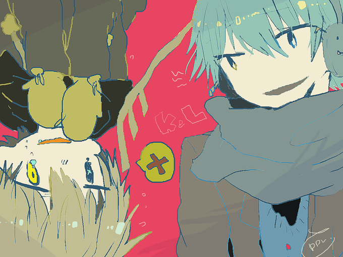 #R15HTF版深夜の真剣お絵描き60分一本勝負 両想い/ ※ホモ注意・英覚イメージ※ フリッピーとディド擬人化。