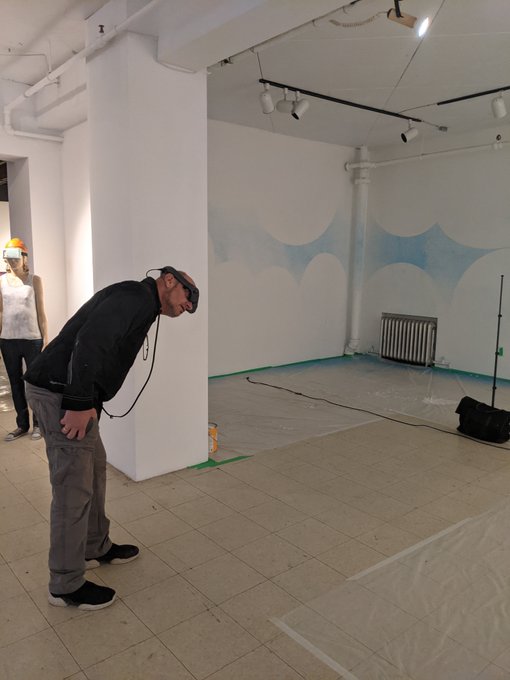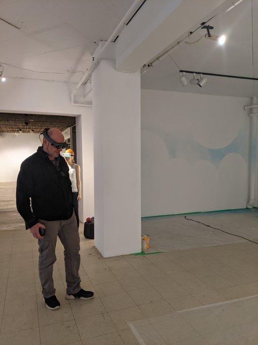 Showing the co-director of Art Mûr Gallery some VR furniture concepts in AR, using the MagicLeap and VIM.