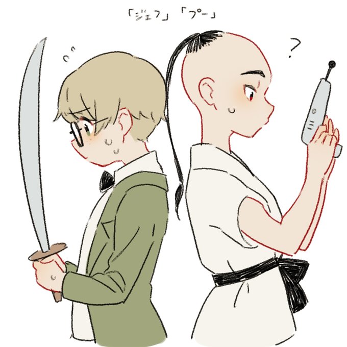 #MOTHER午後のお絵描き一本勝負 ネスポラでもやったのでこちらも衣装交換!! 日中参加できなかったので夜半過ぎに失礼いたします (お題:ジェフ、プー)