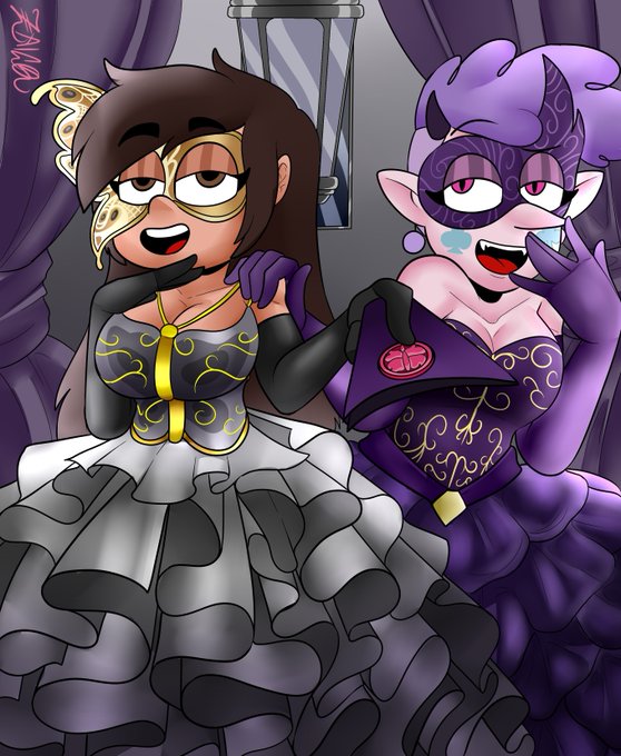 You've been an invited to a beautifully evening of fun and a memorable night at the Butterfly Masquerade hosted by these two. Only question is do you you accept? A wonderful commission by @zaicomaster14 #svtfoe #mariposa_diaz #meteora_butterfly #masquerade #art