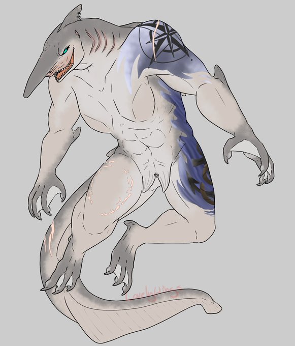 My Sharksona~ Big strong tattooed Goblin girl. I don't draw her nearly enough either, she's honestly one of my favorites... 🥺💙