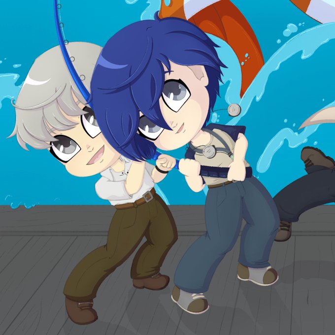They caught a fish. I like drawing derpy fish, so it’s not really representative of any in the games. Following page to my other drawing. #p3mc #p4mc #p5mc #cuteart #personafanart #storybook #chibiart #renamamiya #yunarukami #makotoyuki #minatoarisato #akirakusuru #soujiseta