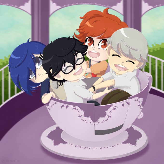 Just four fools in a teacup. One with blur and one without, plus closeups. #renamamiya #yunarukami #makotoyuki #minatoarisato #akirakusuru #soujiseta #minakoarisato #kotoneshiomi #persona3 #persona4 #persona5 #storybook #personafanart #chibistyle #cuteart