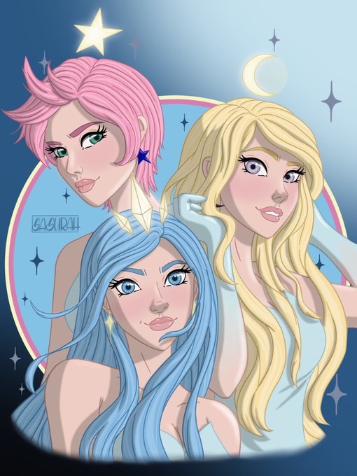 Happy 5th Year on YouTube @rossdraws ! Here is #rossdrawstiys , the colour dodge princesses, with Wish (left), Miracle (right) and Dream (center).