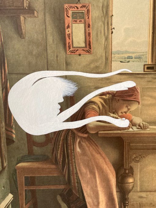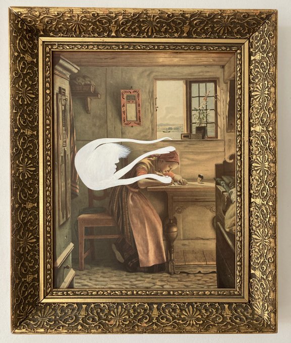 "Conduit" Acrylic on thrift shop framed print. 30 x 42 cm / 11.5 x 16.5 ". https://t.co/4rvWkwj9Bh #thriftshop #thriftshopart #collaboration #conduit #channeling #writing #ghost #ghosts #spirit #spirituality #art #bradmossman #acrylic #freeflow #streamofconsciousness #bmossman
