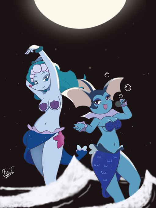 My Primarina and @theaaronschmit vaporeon girl are in an ocean show under the moon. Enjoy it.