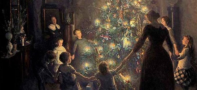 Viggo Johansen was born in Copenhagen in 1851 and died in Copenhagen in 1935. He was known for his sensitive subdued lighting effects, as seen here in 'Merry Christmas' from 1891. #Christmas #denmark #Copenhagen