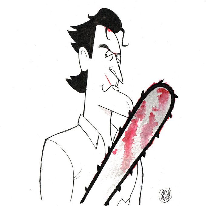 New drawing of Evil Ash from the Evil Dead 2 played by the legendary @GroovyBruce