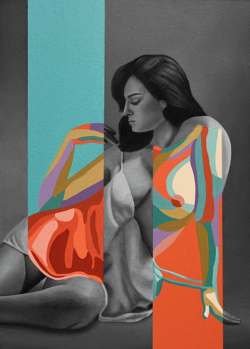 I really love this work, a combination of realism and cubism made with acrylic on canvas👩🏻🎨