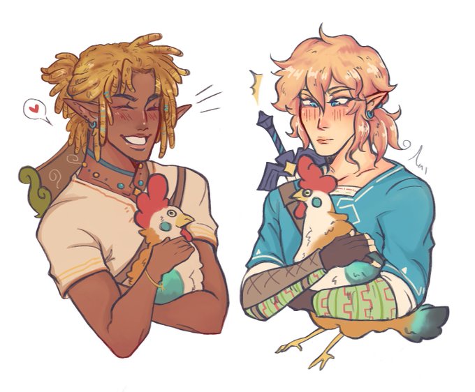 Links petting some cuccos!! I just had to draw @kxyoph 's Link,, i love his design so much, he's so cute and I love botw so this came of it of course 👉👈