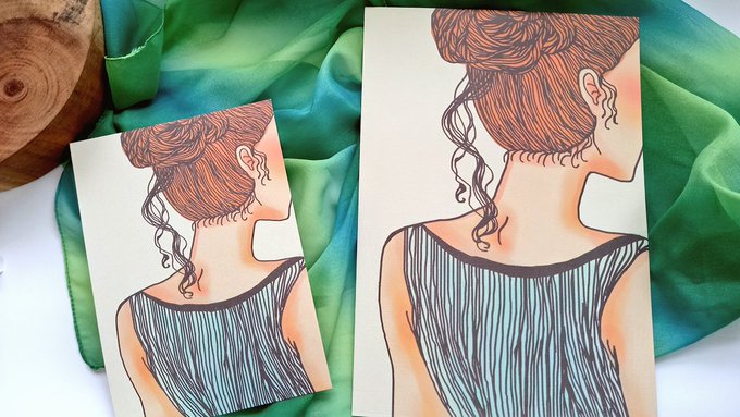 So today I went to print some artprints (260gsm) of my Messy Bun hair girl digital painting and they turned out pretty well! One A4 print has left the nest to a new home💕