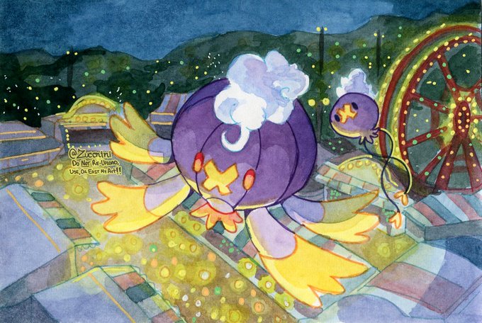 Ghost & Fall themed art: Gengar with Clefable - Dusknoir with Duskull - Farigiraf with Grafaiai - Drifblim with Drifloon.