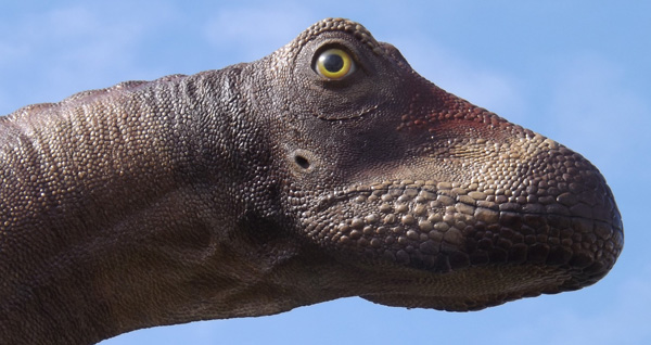 It’s also worth saying that their eyes – while big in absolute size (based on the size of the eye socket and the sclerotic rings preserved in fossils) – are easy to over-emphasise in illustrations... (model by Brian Cooley; photo D. Naish; skull image Martínez et al. 2016)