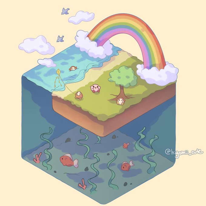 I drew an isometric block inspired by Kirby from the game Kirby and the Forgotten Land! I love how this turned out 🥰 drawn with @Procreate #isometricart #ArtistOnTwitter